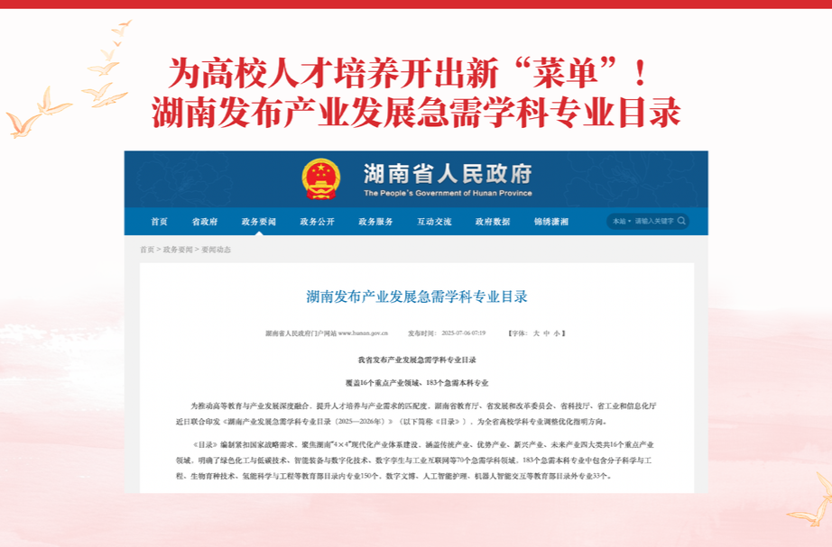 7.为高校人才培养开出新“菜单”!湖南发布产业发展急需学科专业目录